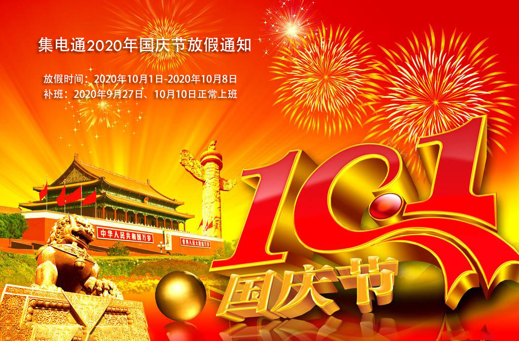 放假時間:2020年10月1日-2020年10月8日;