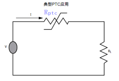 在電路中正溫度系數(JDT A72)過電流保護器件是在電路中串聯使用,當電流急速增加的時候, (JDT A72)從低電阻變高電阻來保護電路。這即稱為器件‘動作’,如圖所示,是一個典型的應用。